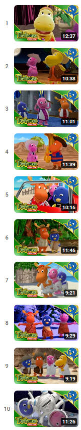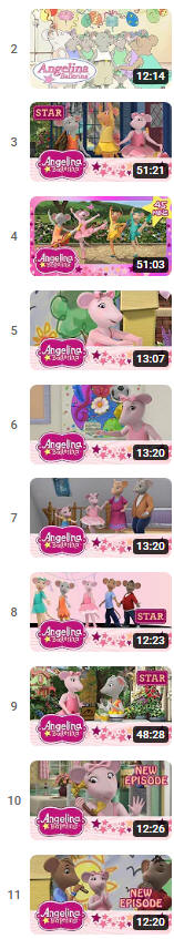 | The Backyardigans | Franklin | Miss Spider | Little Bear | The Berenstain Bears | Angelina Ballerina | |