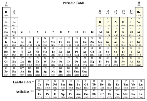 Click here to see a periodic table (UfC) or the The Royal Society of Chemistry - Periodic Table online..