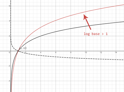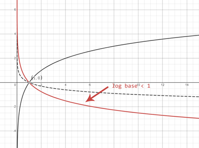 When the log base is smaller than 1 the function looks similar to a reflection.