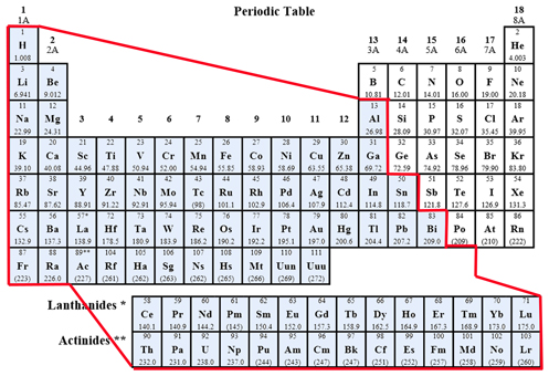 Click here to see a periodic table (UfC) or the The Royal Society of Chemistry - Periodic Table online..