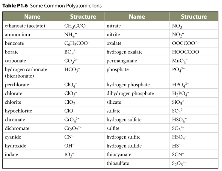 List of Common Polyatomic Ions